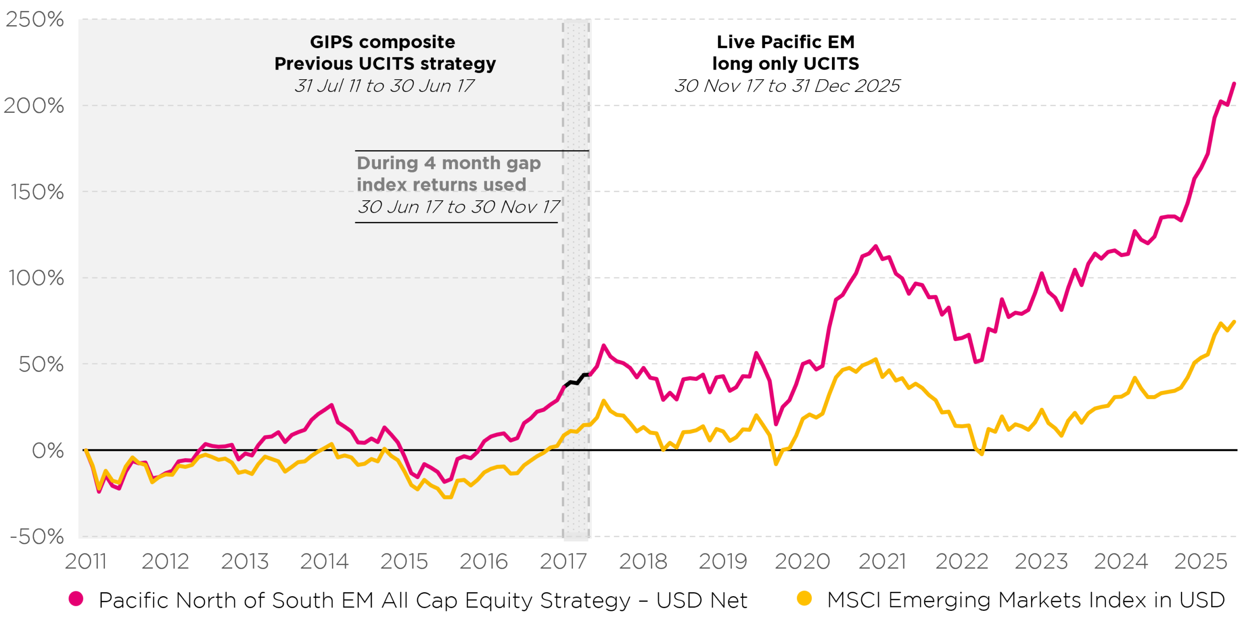 EM all-cap strategy, which has outperformed the global EM benchmark by over 4% per annum since 2011.*